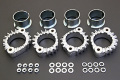 オリジナル復刻版。純正同様の鋳鉄製クロームメッキ仕上げ。フランジ左右各2個の合計4個と割カラー8枚、それにマウンティング用ナットワッシャ各8個を加えた1台分セットでのデリバリーです。マウントホールは75年モデルまでの6mmスタッド用と、76年以降の8mmスタッド用の2ラインナップを用意しました。各9,000